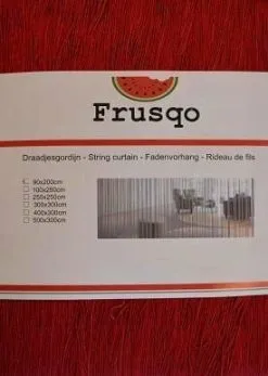 Dit gordijn kan aan een gordijnroede worden gehangen. Bovenaan zit een satijnenband met daarin een tunnel. Je kunt dus zo een stok of roede door de tunnel schuiven. Je kunt ook een uitschuifbare gordijnroede in onze webshop bestellen. Deze gordijnroede klem je tussen het deurkozijn. Het draadjesgordijn blijft zo mooi in het kozijn hangen.