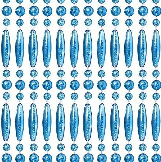 Luxe kralengordijn gemaakt van nylon draad. De kunststof kralen zijn stuk voor stuk aan het nylon draad gesmolten. Het geheel hangt aan een kunststof witte cassette.