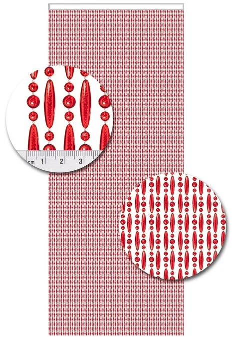 Dit zijn kwalitatief gezien echt goede kralengordijnen. De draadjes die gebruikt zijn, zijn gemaakt van nylon en dus extra sterk. De kunststof kralen zijn stuk voor stuk aan het nylon draad gesmolten. Het geheel hangt aan een witte cassette. Het is een vrij dicht kralengordijn waarbij er op circa elke centimeter een streng hangt. Om als voorbeeld even een vliegengordijn met een breedte van 90cm te noemen; hier hangen circa 90 strengen aan.