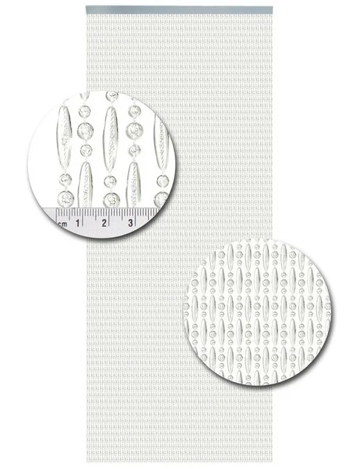 Dit zijn kwalitatief gezien echt goede kralengordijnen. De draadjes die gebruikt zijn, zijn gemaakt van nylon en dus extra sterk. De kunststof kralen zijn stuk voor stuk aan het nylon draad gesmolten. Het geheel hangt aan een witte cassette. Het is een vrij dicht kralengordijn waarbij er op circa elke centimeter een streng hangt. Om als voorbeeld even een vliegengordijn met een breedte van 90cm te noemen; hier hangen circa 90 strengen aan.